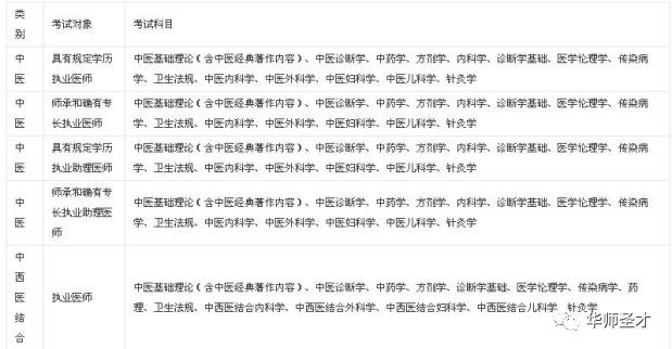 中医、中西医结合、民族医医师资格考试科目具体如下: