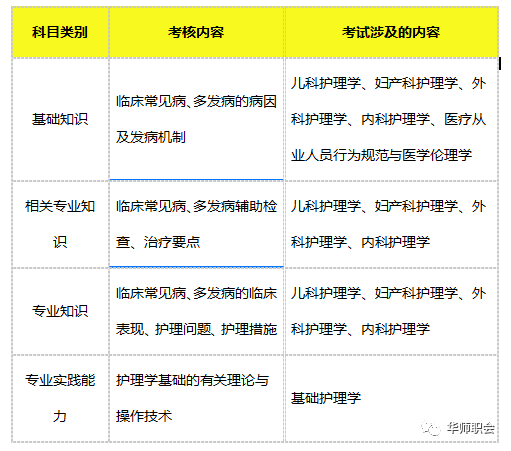 护理学专业(初级护师)考试科目与内容相应关系见下表:(对应表内容仅供参考,详细内容参见考试大纲)